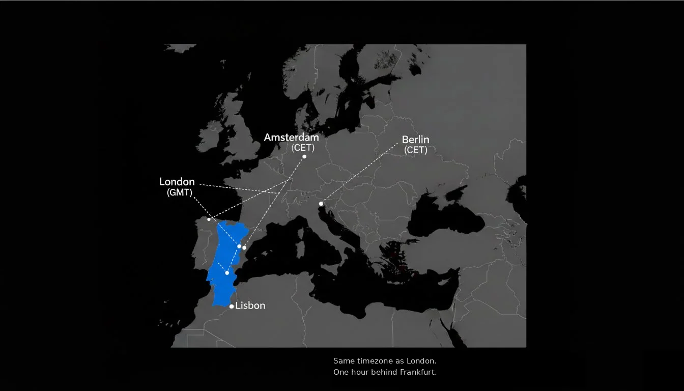 Portugal operates on Western European Time (WET/GMT in winter, GMT+1 in summer), which places it in the same timezone as the UK and one hour behind most of Continental Europe. This is a structural advantage that is easy to understate. It means that a company headquartered in London, Amsterdam, Frankfurt, or Stockholm can run a full working day in genuine overlap with a Portuguese team — no early starts, no late calls, no asynchronous gaps that slow down decision-making in fast-moving projects.